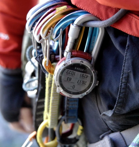专业攀岩运动员必备配件,用 COROS 快挂扣可将手表挂在腰间,能帮您解放双手,不影响攀岩手腕动作,同时也能随时查看数据更方便。