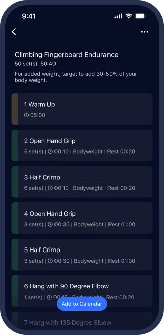 在 COROS APP 或 Training Hub 中可创建攀岩训练课程。下一次训练,您可以跟着手表上的课程进行训练。