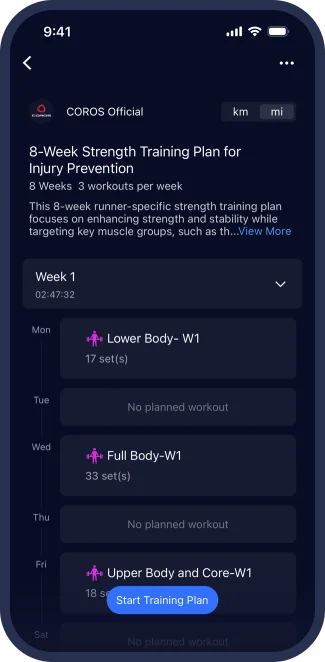 在 COROS Training Hub 上可创建自己的训练计划,或从 Training Hub 接收教练的训练计划和反馈指导。