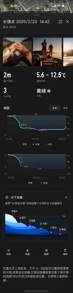 水下数据手表呈现,生成可视化图表与示意图,一目了然,作钓中随时清晰决策。