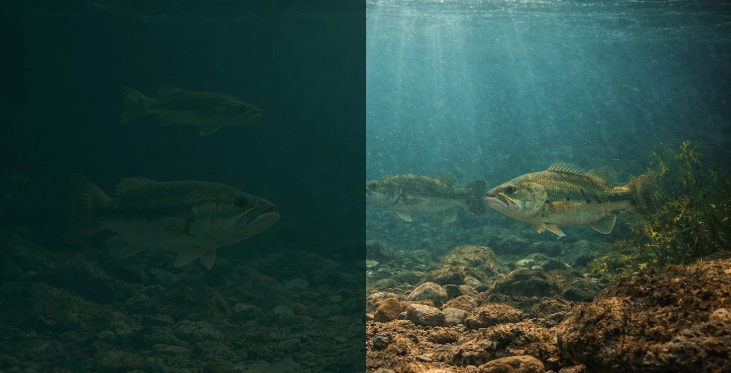 光学感知水色与透明度,判断水质与光线条件,优化鱼饵颜色与类型选择,精细控饵操作。